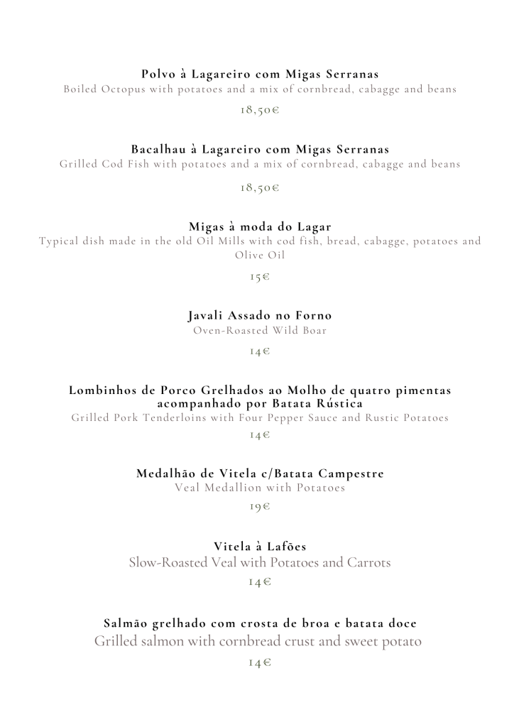 Sábado e Domingo – 12h às 14h30 | Jantares mediante consulta e marcação.